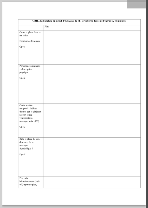 GRILLE d'analyse filmique Un secret, Cl. Miller